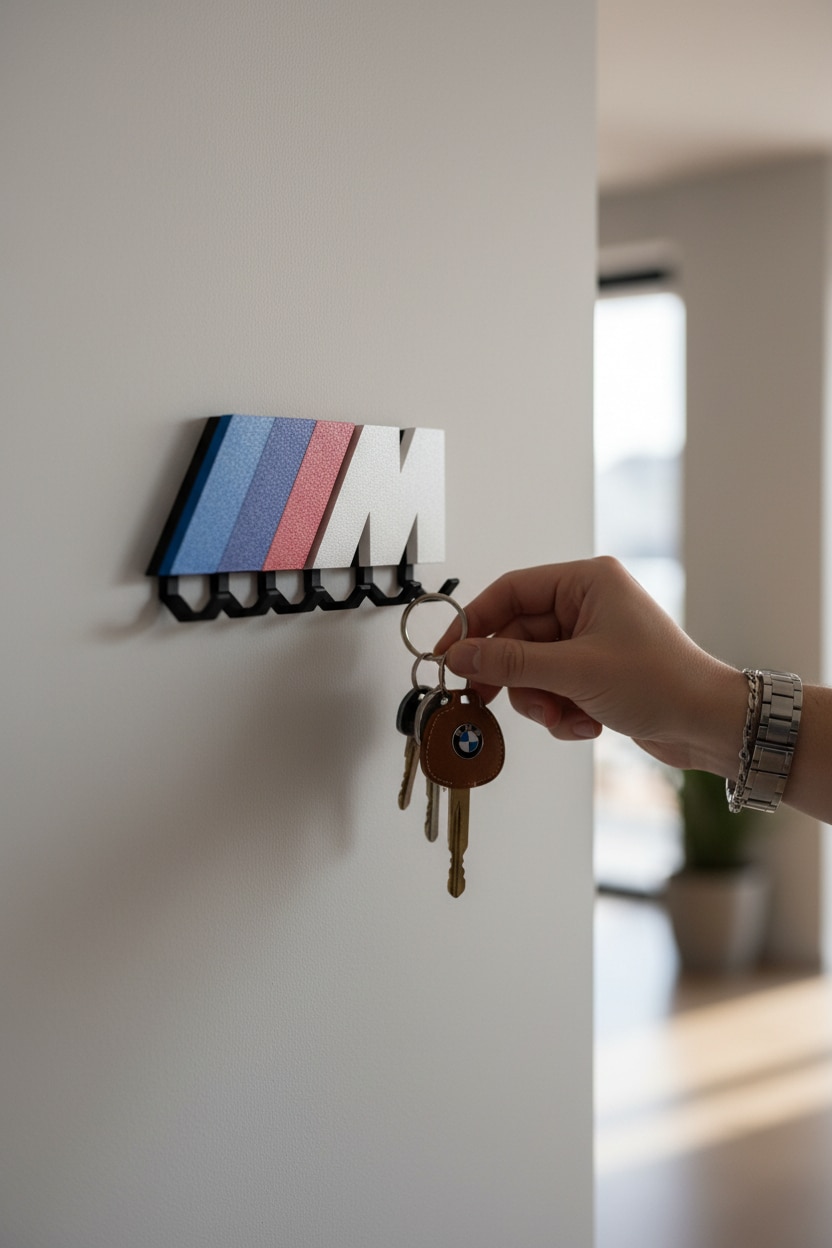 BMW M Sport figür tasarımına sahip anahtarlık askısı, anahtarları düzenli ve kolay erişilebilir şekilde saklamak için kullanışlı bir üründür. Dekoratif görünümüyle ev ve ofis kullanımına uygundur, hediye olarak da tercih edilebilir.