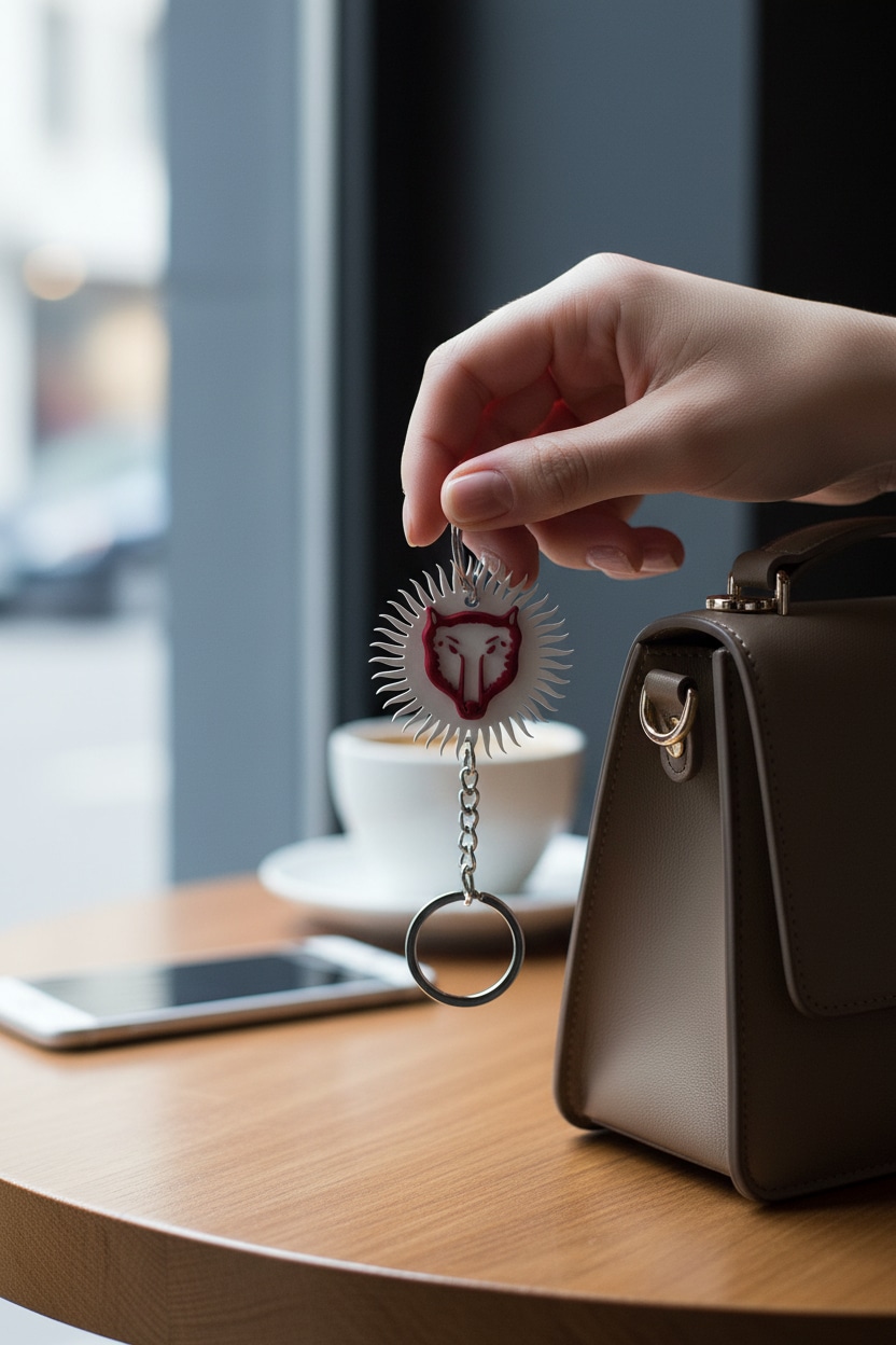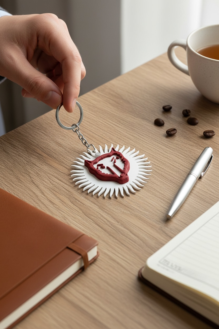 Börübudun logosu temalı anahtarlık, sade ve anlamlı tasarımıyla günlük kullanım için uygundur. Hafif ve dayanıklı yapısı sayesinde anahtar, çanta veya sırt çantasında rahatlıkla taşınabilir. Kullanım ve hediye için idealdir.