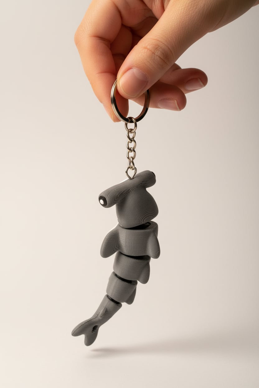 Çekiç balığı figür tasarımına sahip hareketli anahtarlık, özgün ve dikkat çekici görünümüyle öne çıkar. Oynar yapısı sayesinde eğlenceli bir kullanım sunar. Anahtar, çanta veya sırt çantasında rahatlıkla kullanılabilir. Günlük kullanım ve hediye için uygundur.