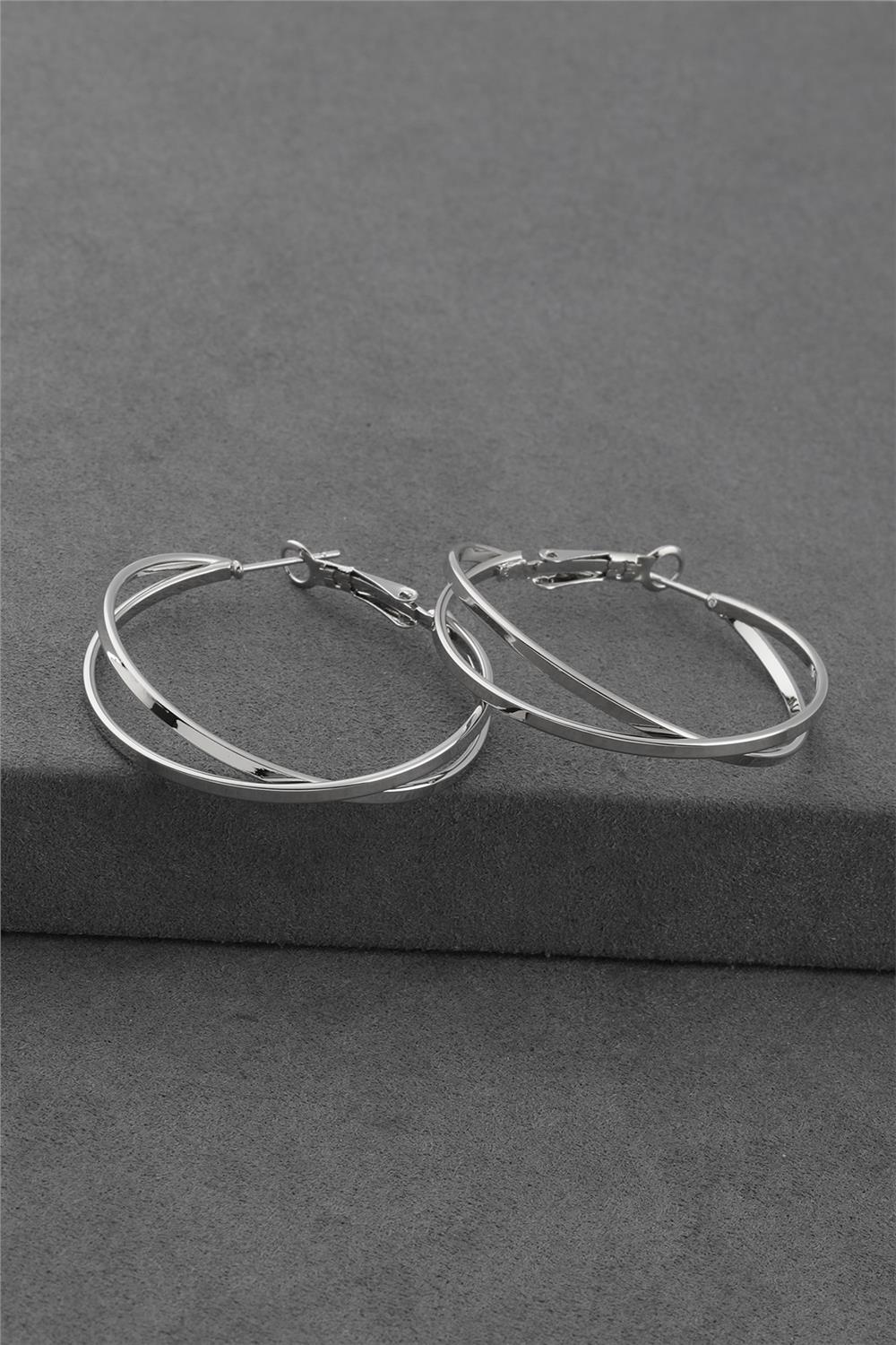 Çoklu Halka Gümüş Renkli Çelik Küpe