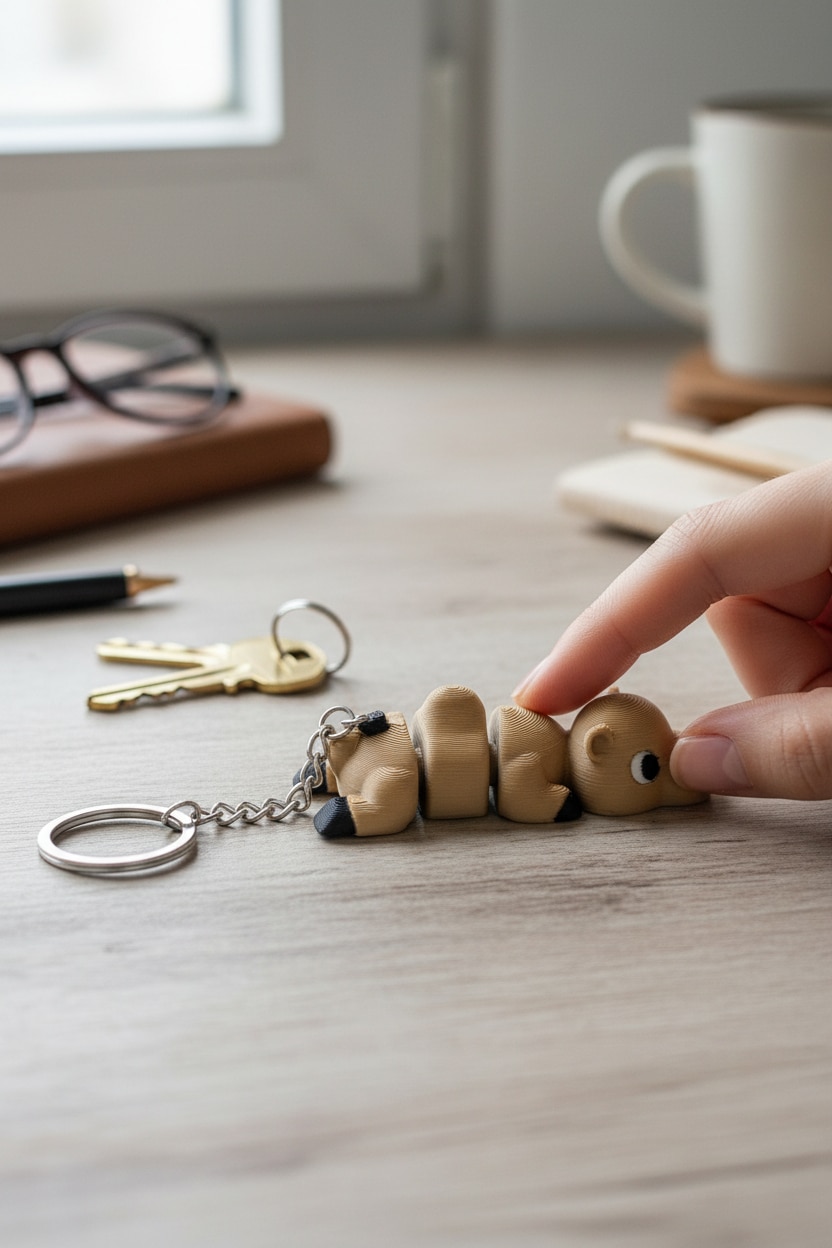 Deve figür tasarımına sahip hareketli anahtarlık, oynar yapısıyla eğlenceli ve dikkat çekici bir kullanım sunar. Hafif ve dayanıklı yapısı sayesinde anahtar, çanta veya sırt çantasında rahatlıkla kullanılabilir. Günlük kullanım ve hediye için uygundur.