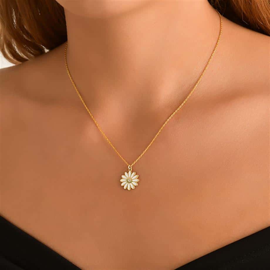 Gold Renk Papatya Figürlü Bijuteri Kolye