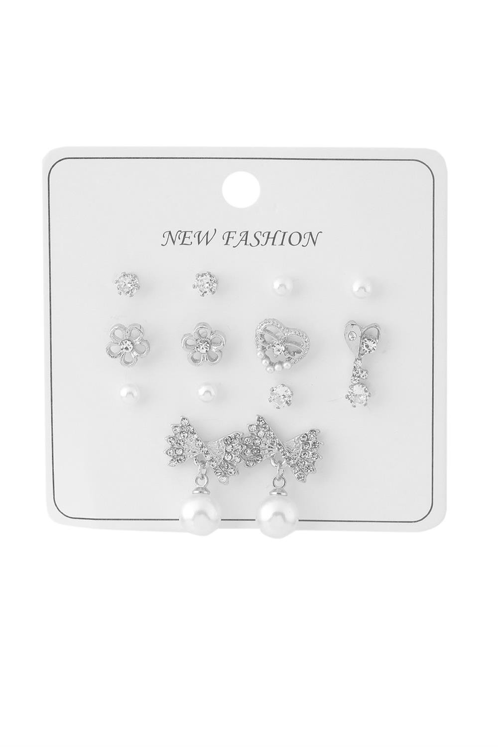 İnci ve Taş Detaylı Silver Renk Bijuteri Küpe Seti
