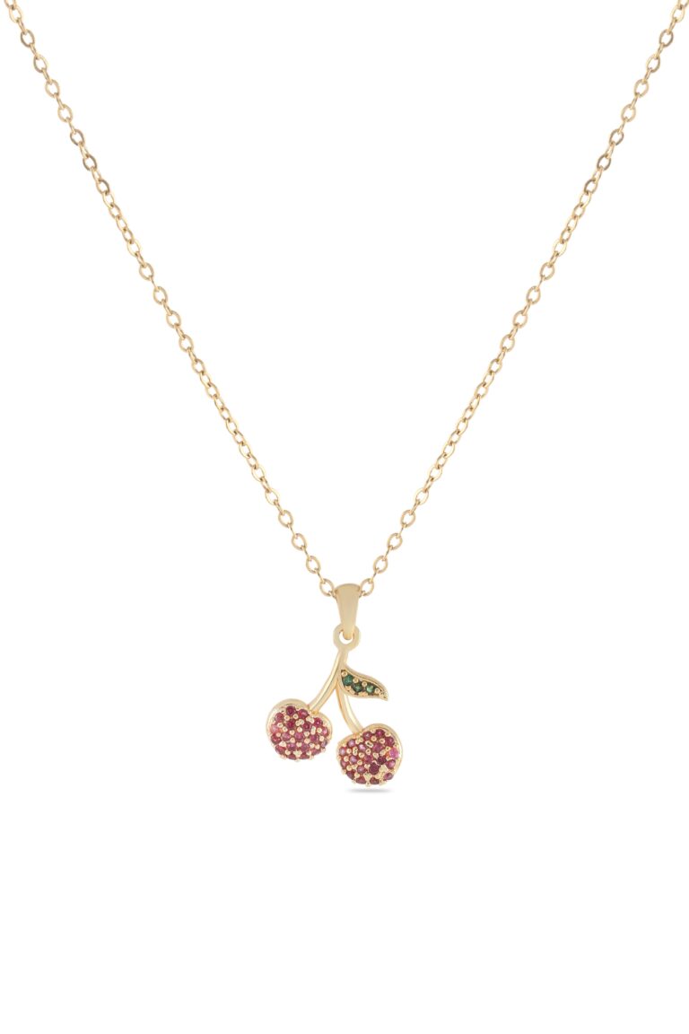 Kiraz Figürlü Altın Renkli Çelik Kolye