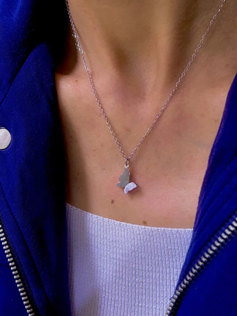 Kelebek Figürlü Gümüş Renkli Çelik Kolye
