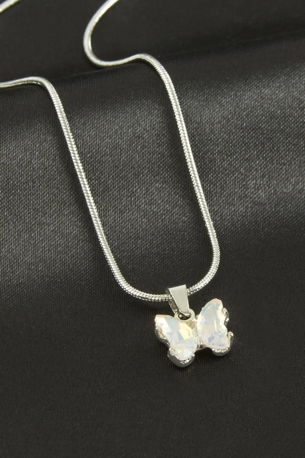 Kelebek Figürlü Silver Renk Çelik Kolye