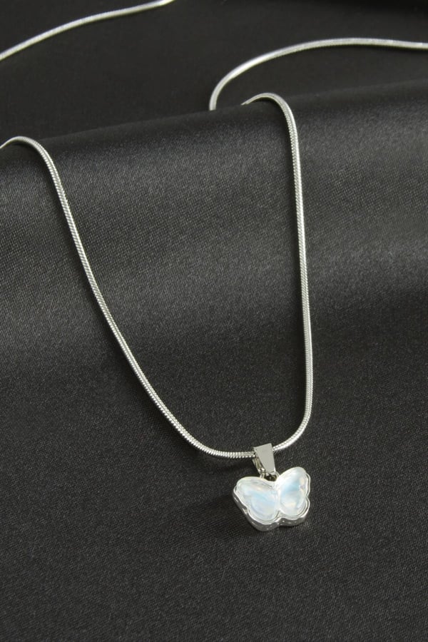Kelebek Figürlü Silver Renk Paslanmaz Çelik Kolye