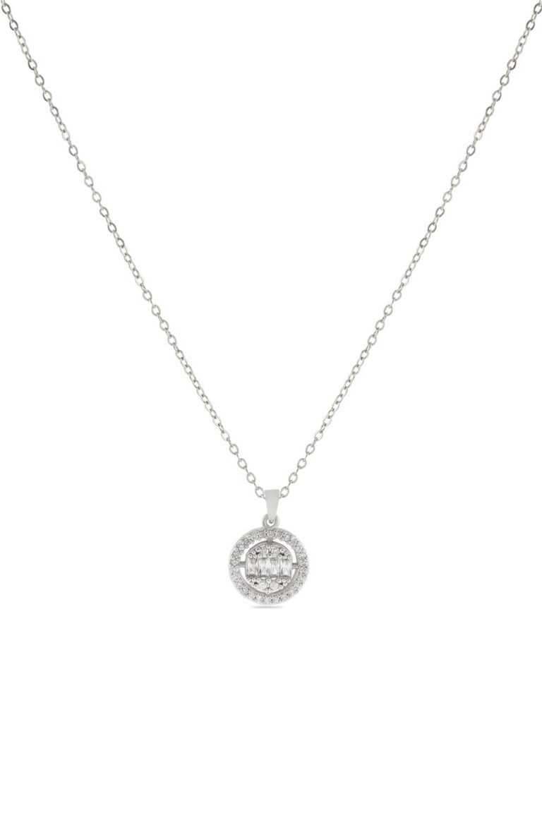 Yuvarlak Figürlü Gümüş Renkli Çelik Kolye