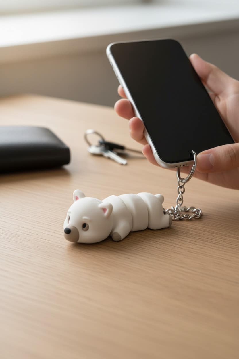 Kutup ayısı figür tasarımına sahip hareketli anahtarlık, sevimli ve dikkat çekici görünümüyle öne çıkar. Oynar yapısı sayesinde eğlenceli bir kullanım sunar. Anahtar, çanta veya sırt çantasında rahatlıkla kullanılabilir. Günlük kullanım ve hediye için uygundur.