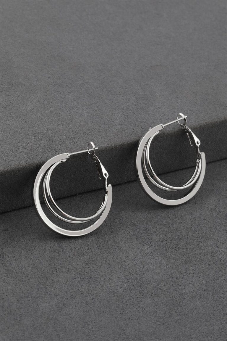 Üçlü Halka Gümüş Renkli Çelik Küpe