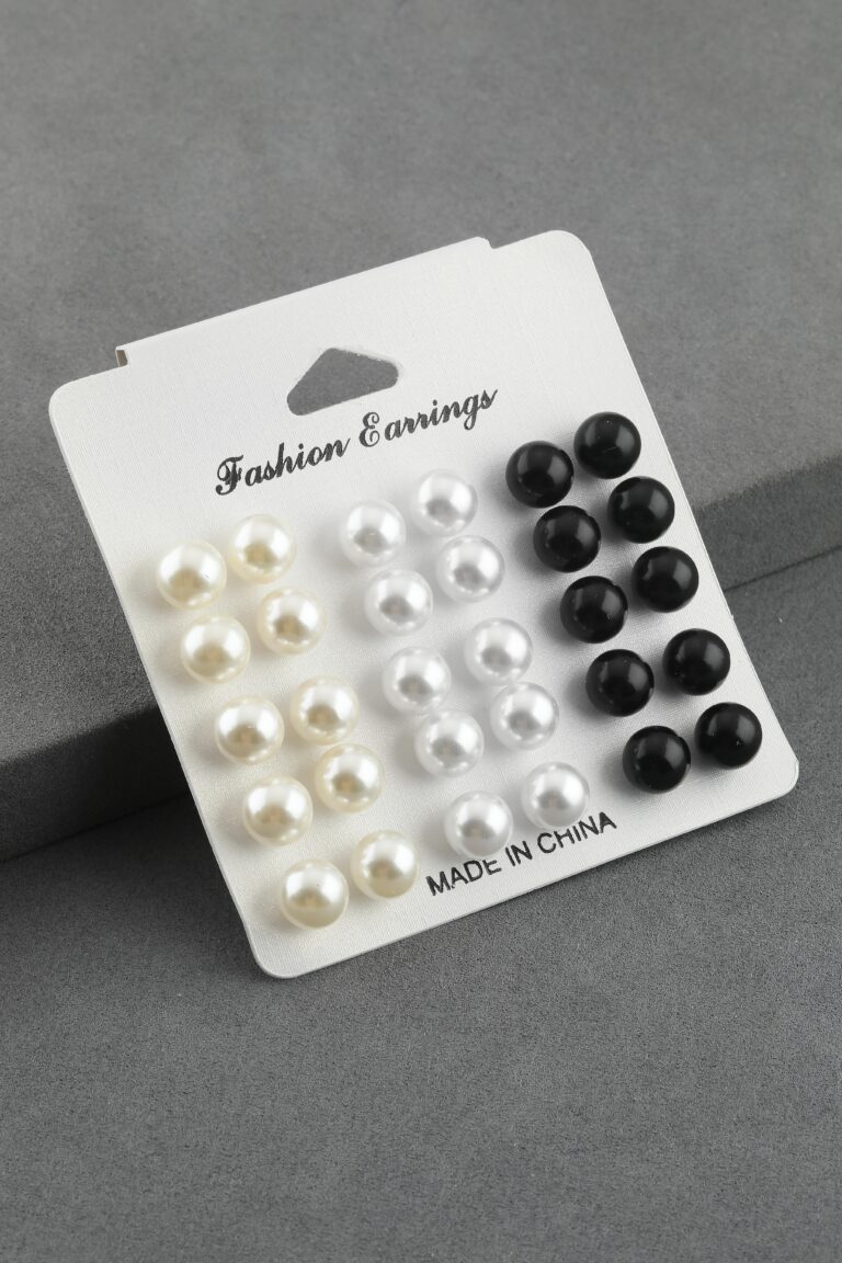 Siyah Beyaz Krem İnci Görünümlü Çoklu Bijuteri Küpe Seti