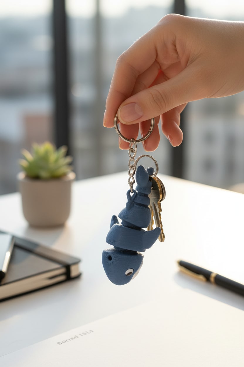 Mavi balina figür tasarımına sahip hareketli anahtarlık, canlı ve dikkat çekici görünümüyle öne çıkar. Oynar yapısı sayesinde eğlenceli bir kullanım sunar. Anahtar, çanta veya sırt çantasında rahatlıkla kullanılabilir. Günlük kullanım ve hediye için uygundur.