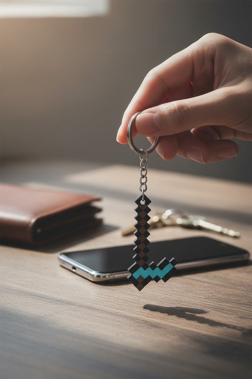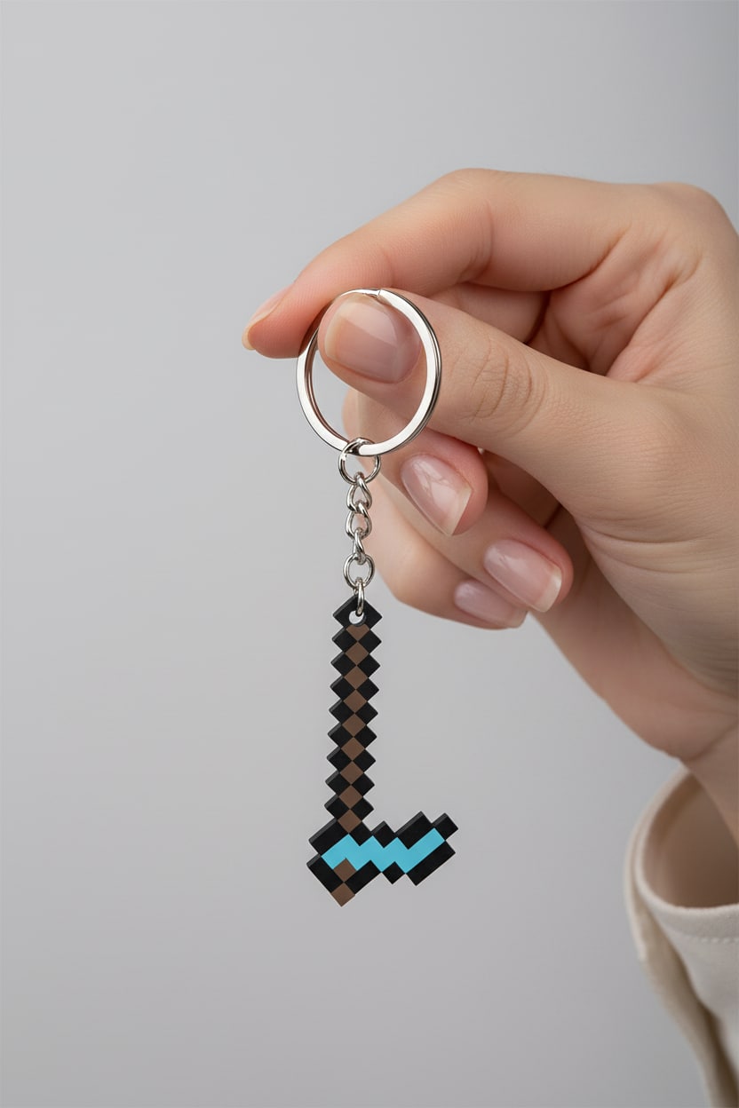 Minecraft dünyasından ilham alan elmas balta figürlü anahtarlık, oyun severler için dikkat çekici ve eğlenceli bir aksesuardır. Hafif ve dayanıklı yapısı sayesinde anahtar, çanta veya sırt çantasında rahatlıkla kullanılabilir. Günlük kullanım ve hediye için uygundur.