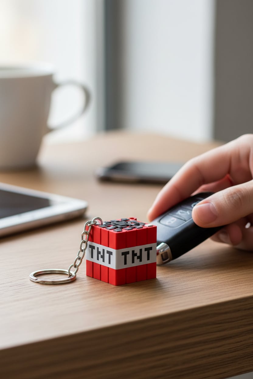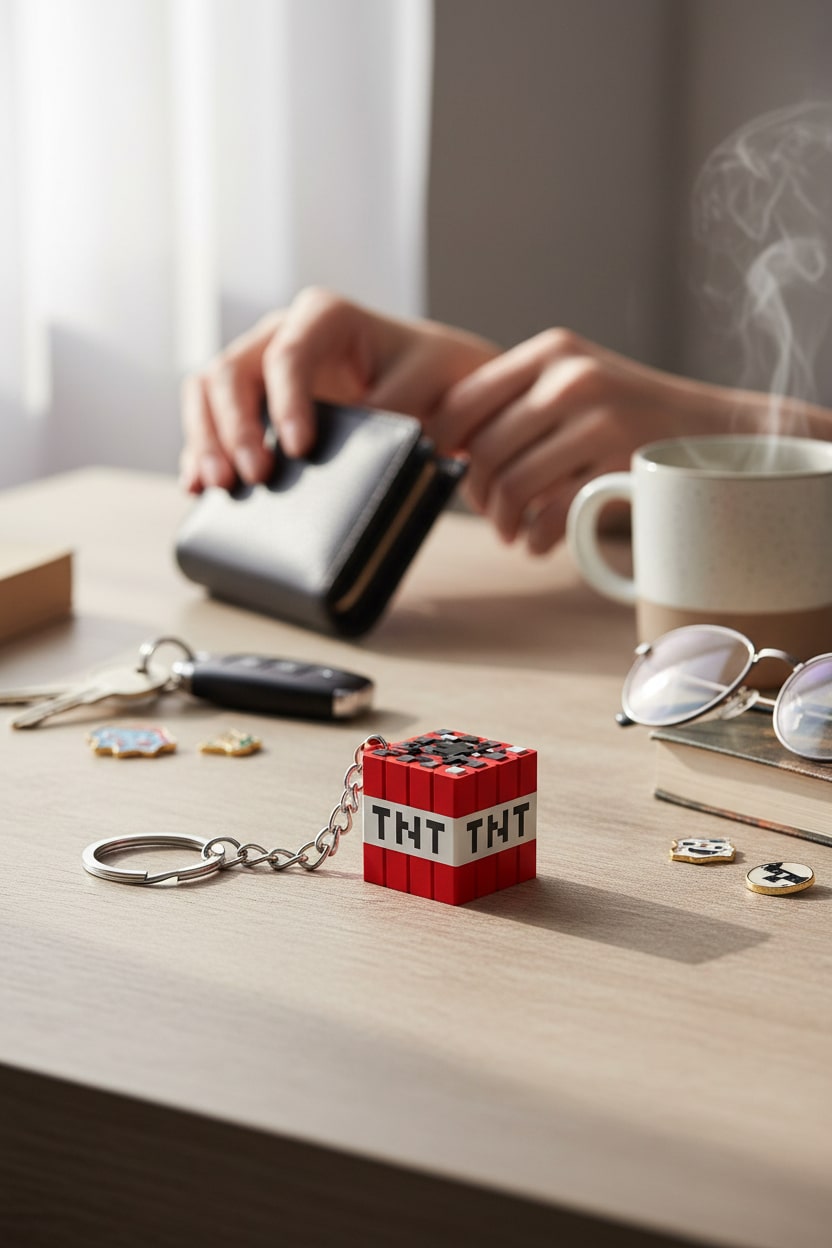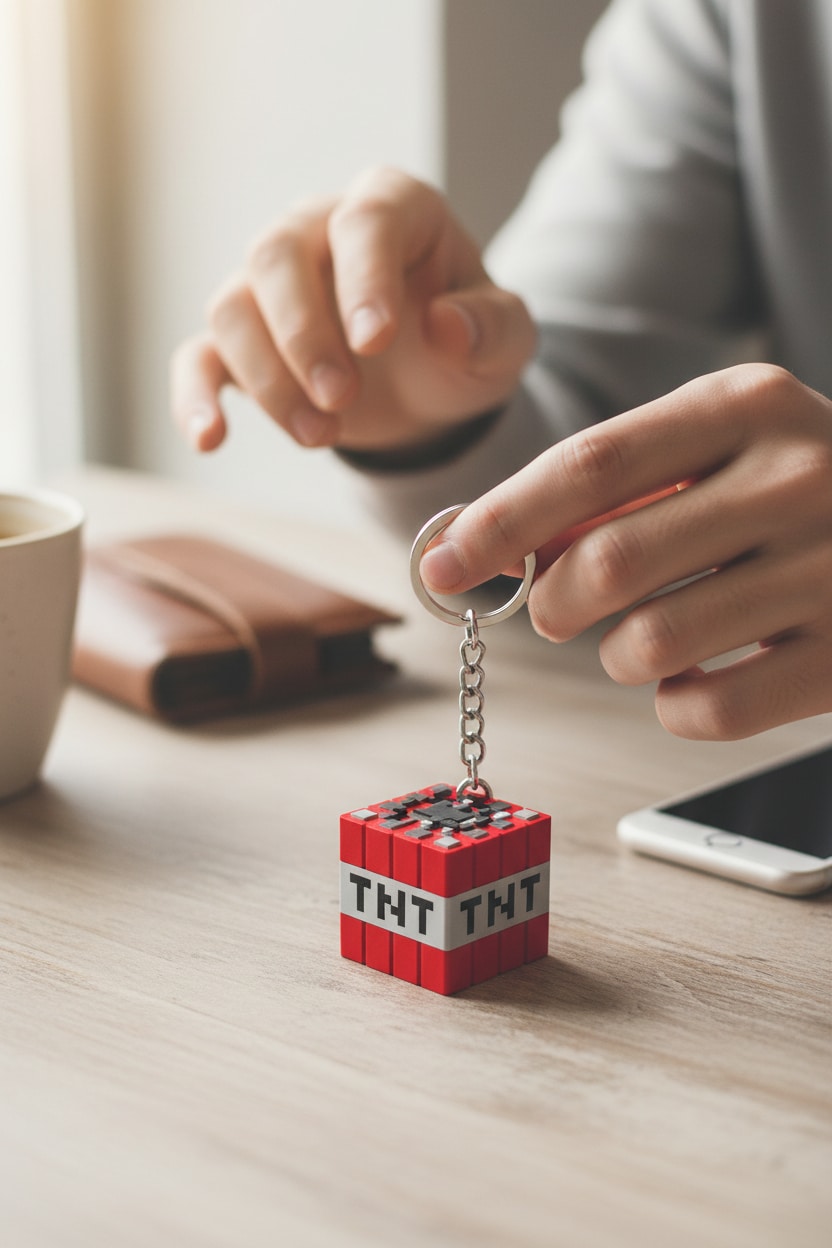 Minecraft dünyasından ilham alınarak tasarlanan TNT figürlü anahtarlık, oyun severler için eğlenceli ve dikkat çekici bir aksesuardır. Kompakt yapısı sayesinde anahtar, çanta veya sırt çantasında rahatlıkla kullanılabilir. Hafif ve dayanıklı yapısı günlük kullanıma uygundur. Kendiniz için ya da Minecraft sevenler için hediye olarak tercih edilebilir.
