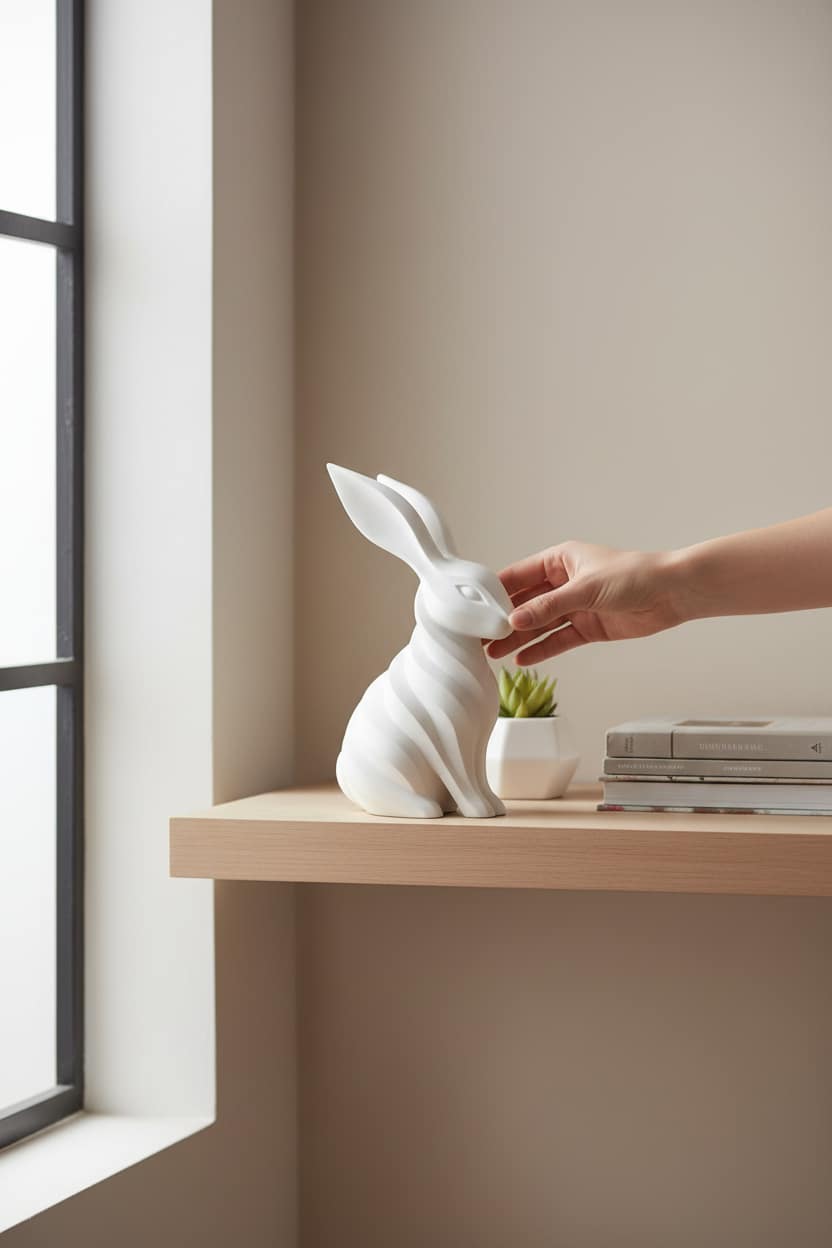 Modern tavşan figürüyle tasarlanan bu dekoratif biblo, sade ve şık duruşuyla yaşam alanlarına estetik bir dokunuş katar. Masa, raf veya vitrin üzerinde sergilemek için uygundur. Dekoratif kullanım ve hediye için idealdir.