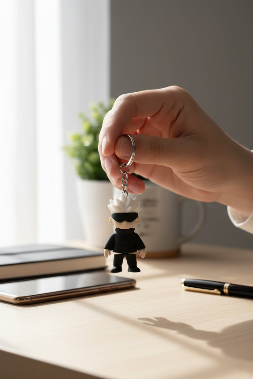 Satoru Gojo figür tasarımına sahip hareketli anahtarlık, oynar yapısıyla eğlenceli ve dikkat çekici bir kullanım sunar. Hafif ve dayanıklı yapısı sayesinde anahtar, çanta veya sırt çantasında rahatlıkla kullanılabilir. Günlük kullanım ve hediye için uygundur.