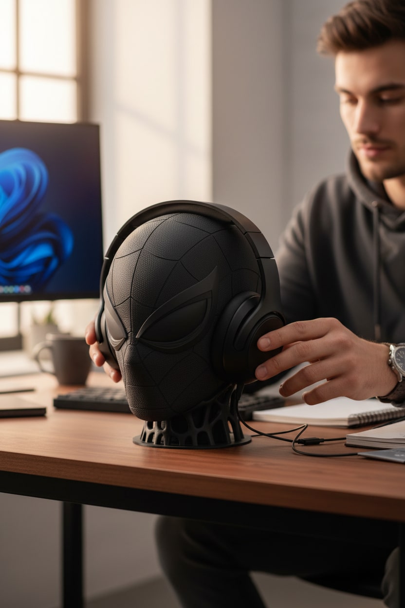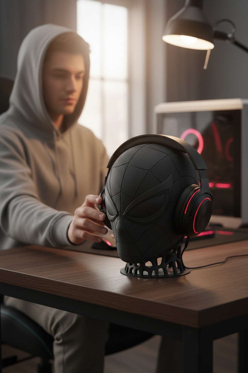 Spiderman figür tasarımına sahip kulaklık standı, kulaklıkları düzenli ve güvenli şekilde saklamak için idealdir. Dekoratif ve dikkat çekici görünümüyle masa, çalışma alanı ve oyun setup’larına şık bir dokunuş katar. Günlük kullanım ve hediye için uygundur.
