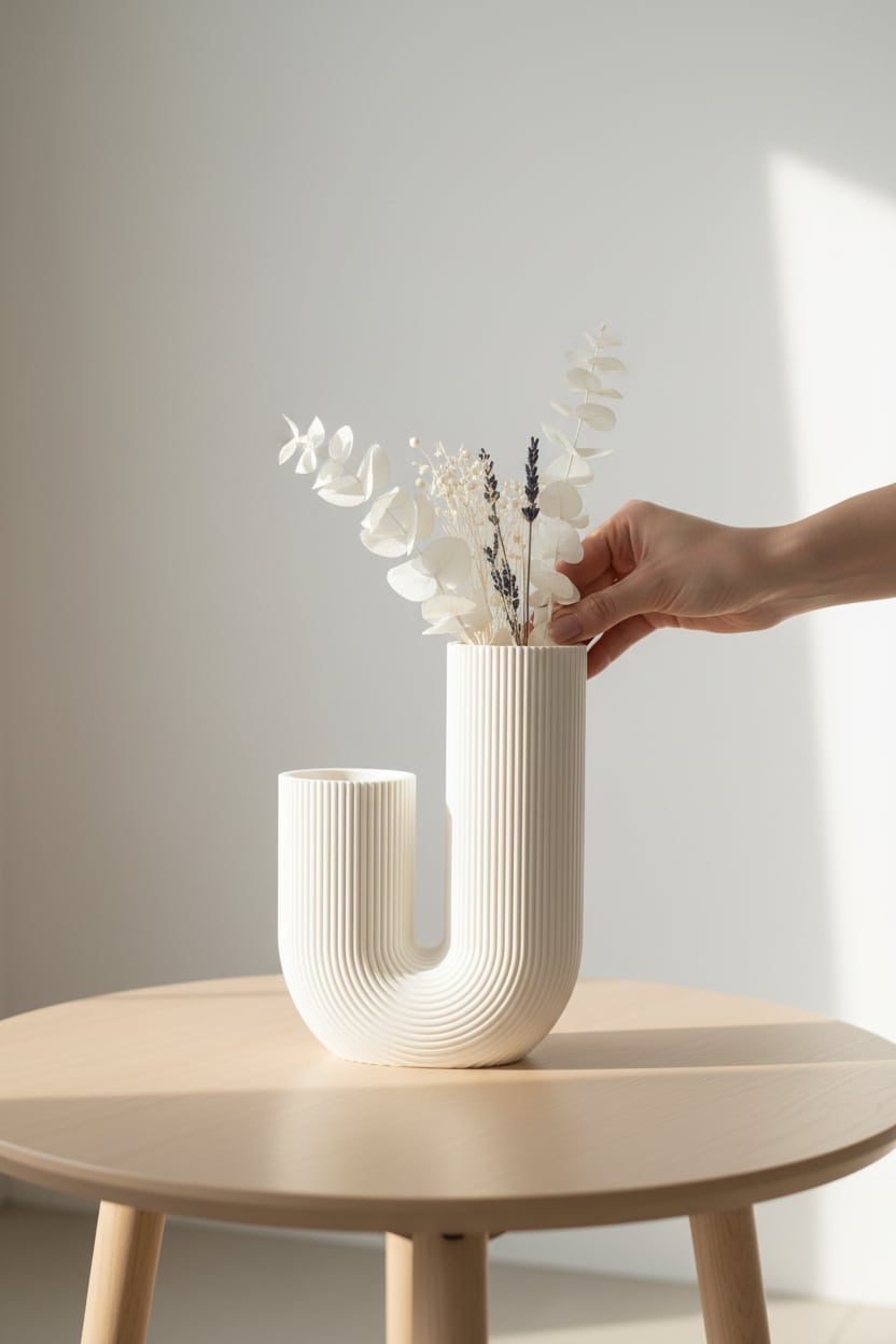 U şeklinde boru figürlü modern tasarımıyla dikkat çeken bu dekoratif vazo, minimalist ve çağdaş bir görünüm sunar. Masa, raf veya konsol üzerinde sergilemek için uygundur. Dekoratif kullanım ve hediye için idealdir.