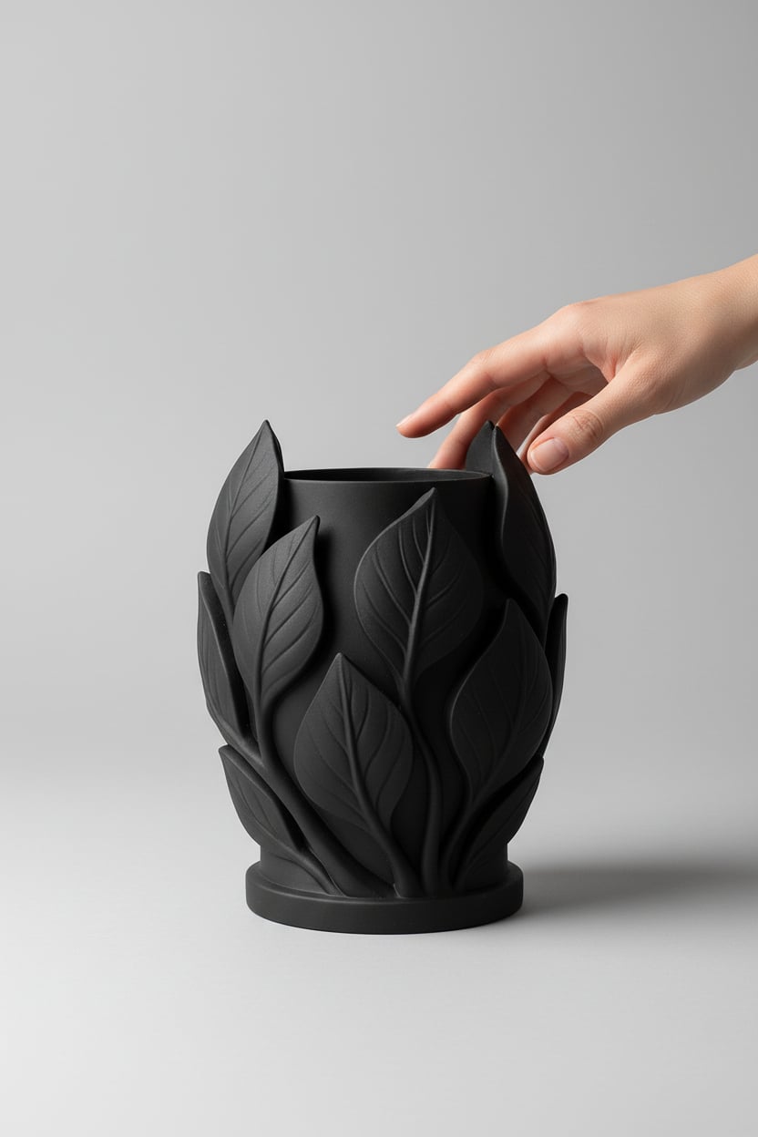Yaprak figürlü tasarımıyla öne çıkan bu dekoratif vazo, doğal ve zarif görünümüyle yaşam alanlarına şık bir dokunuş katar. Masa, raf veya konsol üzerinde sergilemek için uygundur. Dekoratif kullanım ve hediye için idealdir.
