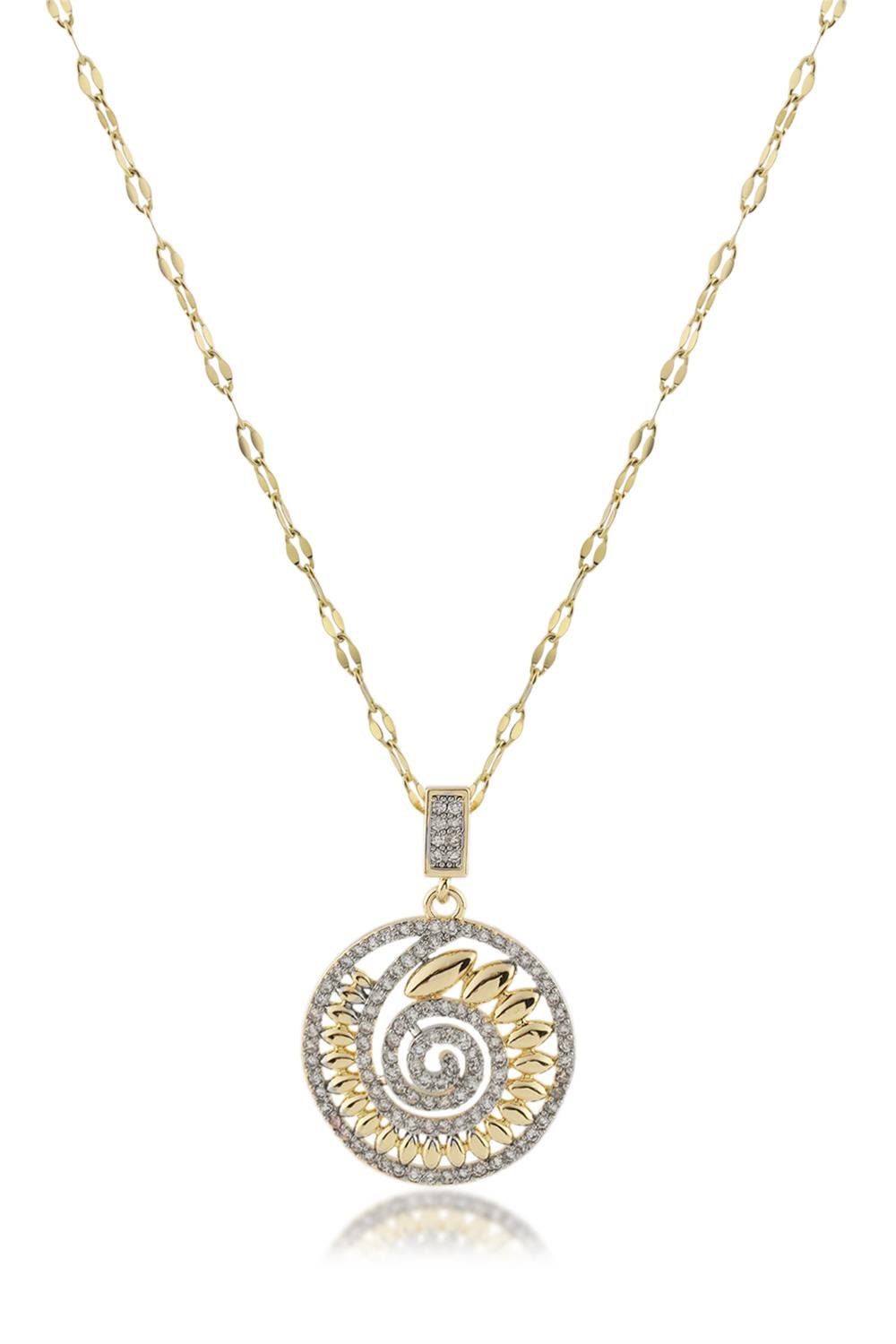 Yuvarlak Figürlü Altın ve Gümüş Renkli Çelik Kolye